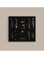 Les teintes, souvent dans les tons pourpres, noirs ou dorés, renforcent le côté royal et sensuel du coffret.